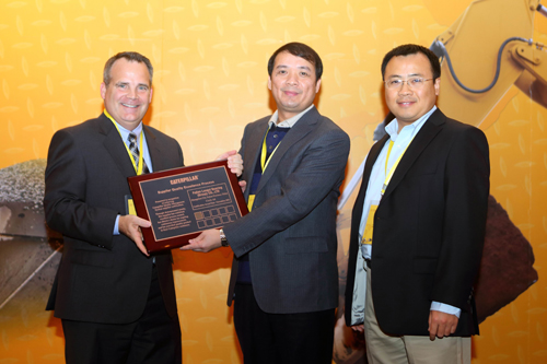2012年12月10-11日,卡特彼勒公司在中國(guó)蘇州舉行的“2012卡特彼勒中國(guó)/韓國(guó)供應(yīng)商會(huì)議”,公司常務(wù)副總經(jīng)理陳晉輝及國(guó)際市場(chǎng)部員工參加會(huì)議。會(huì)上,針對(duì)我司大齒圈項(xiàng)目,卡特彼勒公司授予我司“2011年優(yōu)秀供應(yīng)商SQEP銅牌”,陳晉輝代表公司上臺(tái)接受授牌。