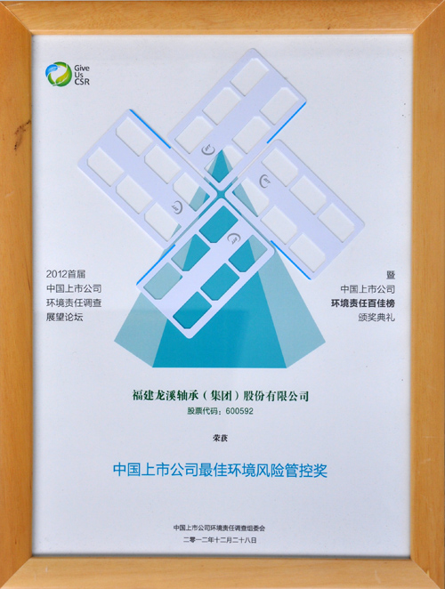 2012年12月28日,首屆中國(guó)上市公司環(huán)境責(zé)任展望論壇暨中國(guó)上市公司環(huán)境責(zé)任百佳頒獎(jiǎng)典禮在北京舉行。我司發(fā)布的2010年度CSR報(bào)告入圍初選;經(jīng)組委會(huì)專(zhuān)家組專(zhuān)業(yè)委員綜合評(píng)審,認(rèn)為我司對(duì)生態(tài)文明建設(shè)有明確貢獻(xiàn),環(huán)境責(zé)任管理相對(duì)領(lǐng)先,并經(jīng)過(guò)公眾、股民及47家環(huán)保NGO公示后,入選“中國(guó)上市公司環(huán)境責(zé)任百佳企業(yè)榜”,榮獲“中國(guó)上市公司最佳環(huán)境風(fēng)險(xiǎn)管控獎(jiǎng)”。