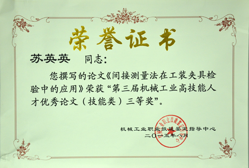 近日,第三屆機(jī)械工業(yè)高技能人才優(yōu)秀論文評(píng)選工作圓滿結(jié)束。此次評(píng)選由機(jī)械工業(yè)職業(yè)技能鑒定指導(dǎo)中心主辦,行業(yè)協(xié)會(huì)、企業(yè)專家組成的評(píng)審專家委員會(huì)對(duì)140余篇論文進(jìn)行了專業(yè)評(píng)審。公司員工蘇英英撰寫(xiě)的《間接測(cè)量法在工裝夾具檢驗(yàn)中的應(yīng)用》獲得技能類論文三等獎(jiǎng),鐘華撰寫(xiě)的《改進(jìn)檢查方法,提高推力軸承產(chǎn)品球徑尺寸的互換性》獲得技術(shù)類論文優(yōu)秀獎(jiǎng)。此外,公司技能鑒定站站長(zhǎng)洪麗玲也榮獲機(jī)械工業(yè)高技能人才培養(yǎng)優(yōu)秀組織者。