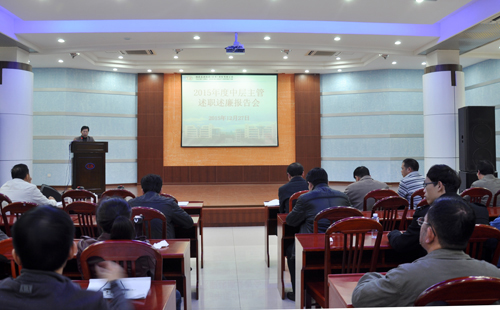2015年12月27日,公司在俱樂(lè)部會(huì)議室召開(kāi) 2015 年度中層主管述職述廉報(bào)告會(huì)。黨委副書(shū)記張?zhí)┥鞒謺?huì)議,公司高管及全體中層主管參加了會(huì)議。會(huì)上46名中層主管分別代表部門、車間以 PPT 形式作述職述廉報(bào)告。
