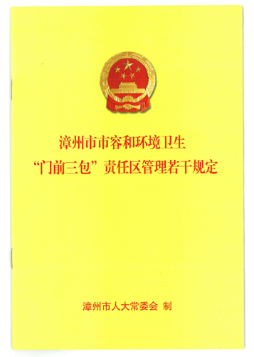 ????《漳州市市容和環(huán)境衛(wèi)生“門前三包”責任區(qū)管理若干規(guī)定》已于2017年4月26日經(jīng)漳州市第十六屆人民代表大會常務委員會第二次會議通過,于2017年5月25日經(jīng)福建省第十二屆人民代表大會常務委員會第二十九次會議批準,現(xiàn)予公布。本規(guī)定自2017年9月1日起施行。