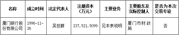 (二) 廈門銀行股份有限公司為非上市金融機構(gòu),其基本信息如下: