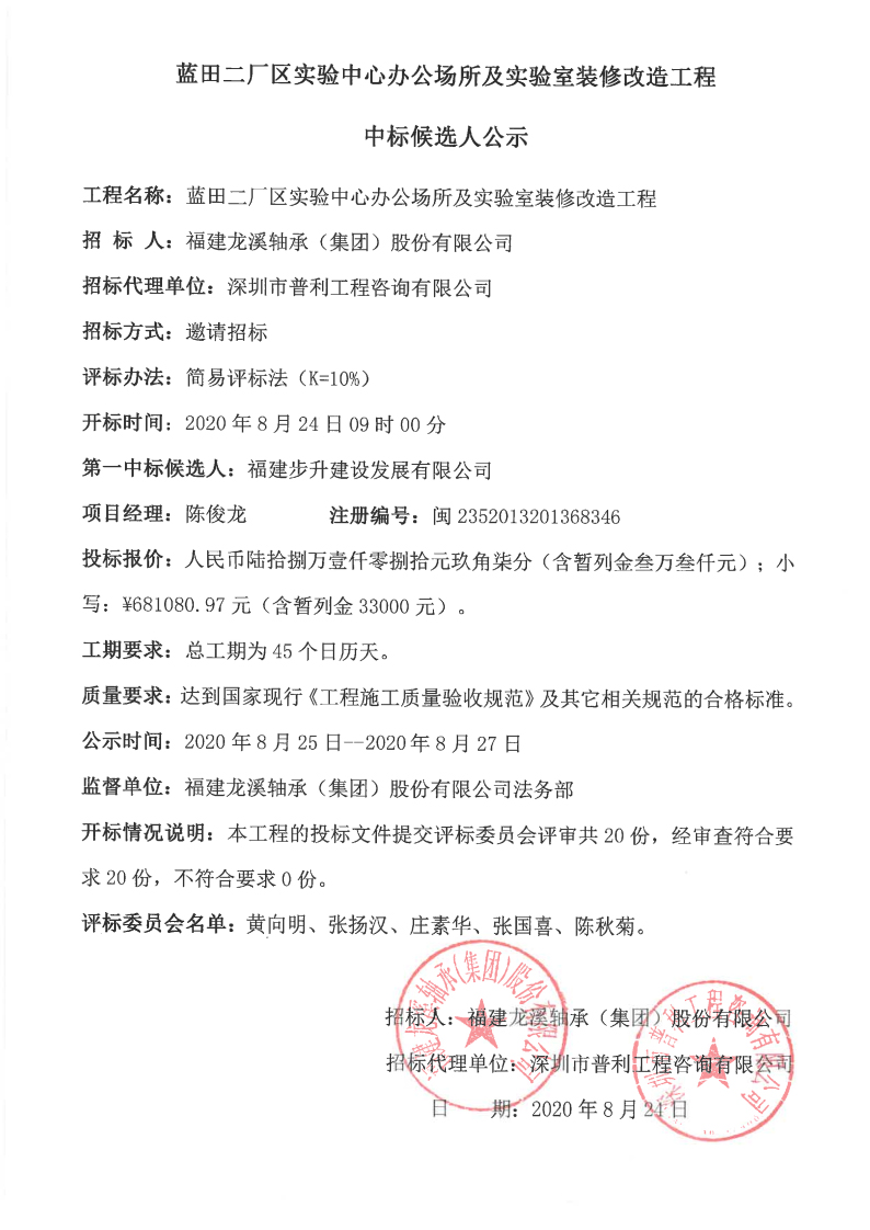 龍軸集團(tuán)藍(lán)田二廠區(qū)實(shí)驗(yàn)中心辦公場(chǎng)所及實(shí)驗(yàn)室裝修改造工程中標(biāo)候選人公示