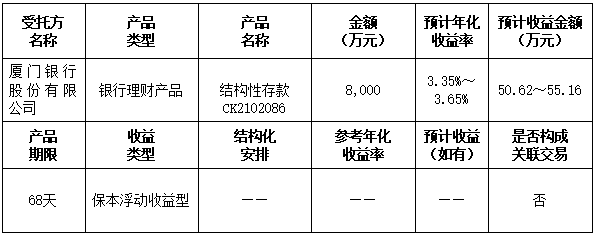 本次委托理財(cái)金額:委托廈門銀行理財(cái)8,000萬元。