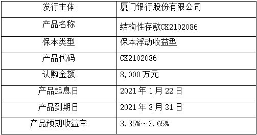 委托理財(cái)受托方:廈門銀行股份有限公司(以下簡稱“廈門銀行”)。