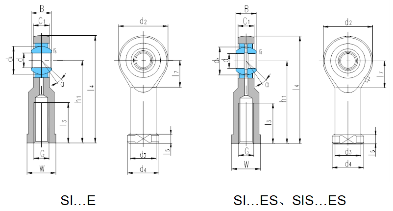 產(chǎn)品特點(diǎn):組裝桿端關(guān)節(jié)軸承由桿端體和向心關(guān)節(jié)軸承GE…E或GE…ES組裝而成,桿端體材料是碳鋼,表面鍍鋅;除型號(hào)后置代號(hào)為E外,其余型號(hào)可通過油杯或桿端眼孔潤(rùn)滑。