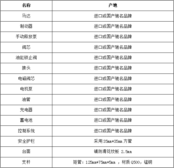 全電動(dòng)自行走剪叉式高空作業(yè)平臺(tái)技術(shù)(協(xié)議)內(nèi)容要求
