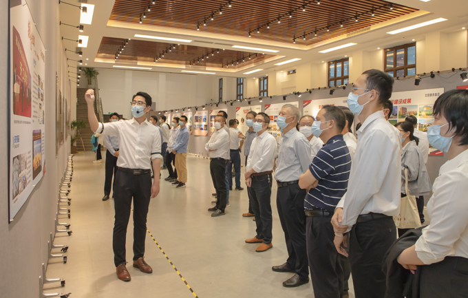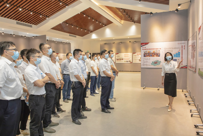 2022年11月1日,龍軸集團(tuán)組織業(yè)務(wù)主辦以上干部及員工代表160余名,由集團(tuán)黨委委員、常務(wù)副總經(jīng)理鄭長虹,黨委副書記劉明福,黨委委員、紀(jì)委書記、監(jiān)察專員王志劼,黨委委員、副總經(jīng)理張逸青,黨委委員、副總經(jīng)理林通靈,財(cái)務(wù)總監(jiān)曾四新,總工程師林振元帶隊(duì),分三批前往參觀漳州市國資委主辦的“國企發(fā)展這十年成就展”。