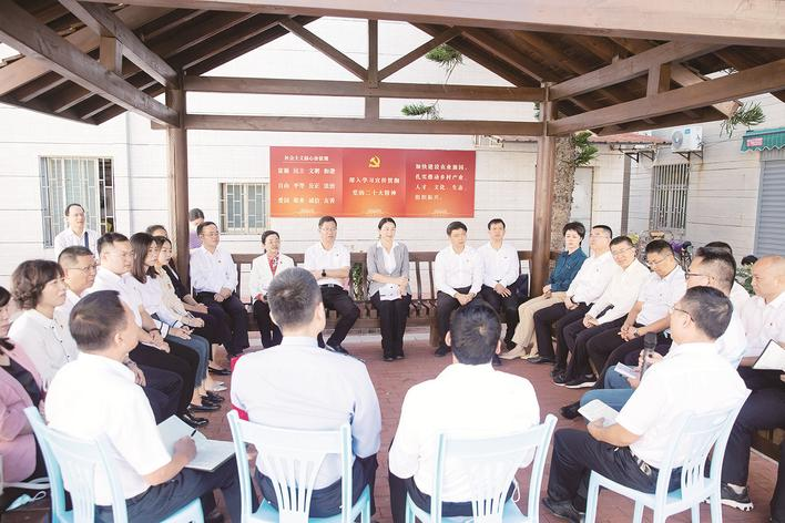 坐在同一條板凳上說話,與干部群眾面對(duì)面交流。市領(lǐng)導(dǎo)娓娓講述道,21年前的夏天,也就是2001年7月15日,在澳角村村民郭漢棟的小樓里,時(shí)任村黨支部書記的林亞民向時(shí)任福建省省長的習(xí)近平介紹“澳角村已從‘三不起’蛻變?yōu)椤目础?,?dāng)時(shí)習(xí)近平同志描繪起新的小康藍(lán)圖,說“以后農(nóng)村的政策會(huì)一年比一年好”。今天,大家很高興來到澳角村,一起追尋習(xí)近平總書記的足跡,學(xué)習(xí)宣傳貫徹黨的二十大精神。