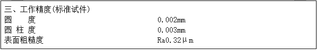 設(shè)備驗收時,根據(jù)實際生產(chǎn)情況,雙方協(xié)商選用其它產(chǎn)品型號作為驗收型號,以產(chǎn)品磨削精度來驗證設(shè)備加工精度,及對“主要技術(shù)參數(shù)”中的內(nèi)容進行驗收