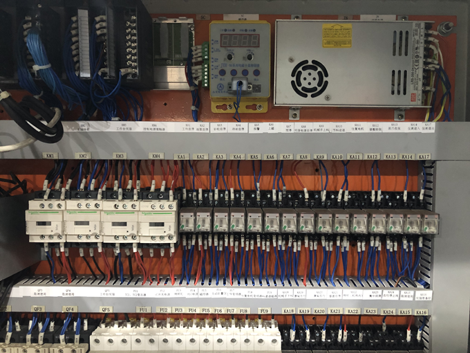 1、機床要配置容量合適的斷路器作為設(shè)備電源總開關(guān),并要求用戶電源進線直接接到總開關(guān)的進線端,并在合適位置配置電源指示燈。電源總開關(guān)接線應(yīng)遵循上進下出原則,確保安全;總進線端接線處應(yīng)留有足夠的線纜安裝空間。