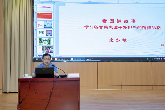 沈志雄老師圍繞“忠誠是谷文昌精神品格最厚重的基石”“干凈是谷文昌精神品格最自然的底色”“擔(dān)當(dāng)是谷文昌精神品格最耀眼的華章”三個方面系統(tǒng)講述了谷文昌同志生平事跡,通過一幅幅珍貴的影像資料和一個個生動的事例,大家更全面地理解谷文昌精神品格的內(nèi)涵,受到了深刻的精神洗禮。
