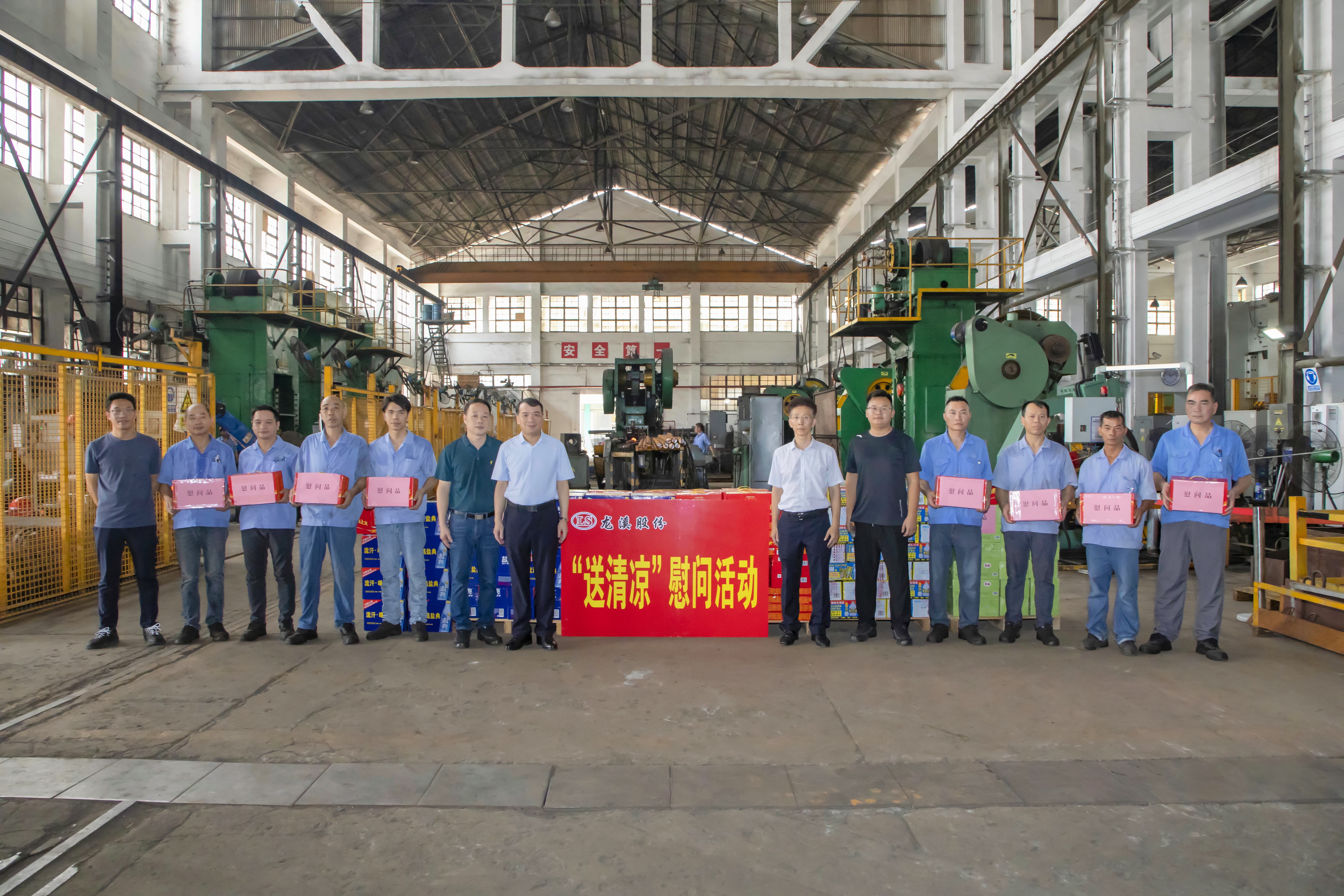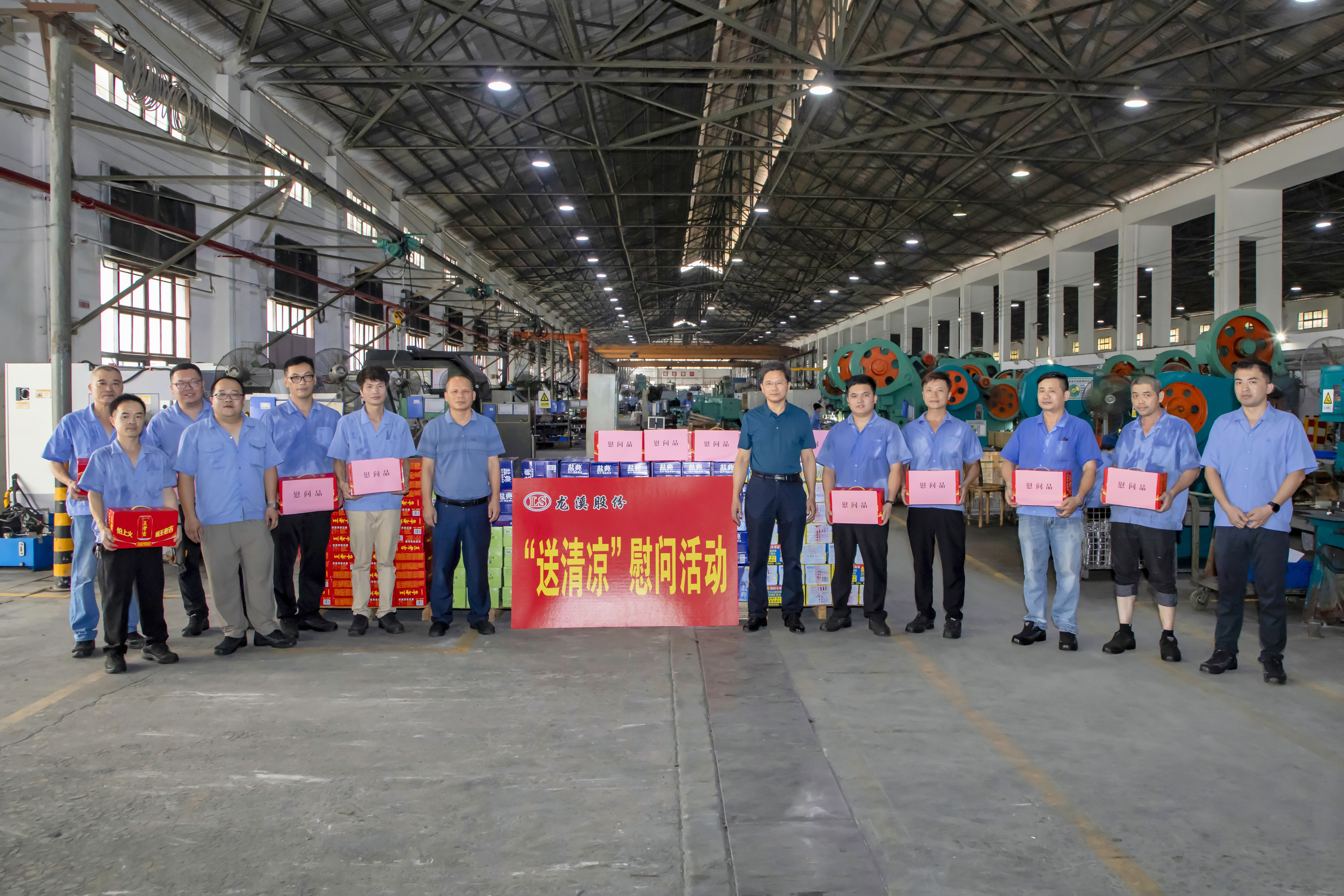 連日來(lái),高溫天氣持續(xù),熱浪席卷廠區(qū)。為切實(shí)做好一線(xiàn)員工關(guān)懷工作,2025年7月17日,集團(tuán)黨委書(shū)記、董事長(zhǎng)陳晉輝,黨委副書(shū)記、總經(jīng)理陳志雄帶領(lǐng)領(lǐng)導(dǎo)班子成員分四組深入各生產(chǎn)車(chē)間開(kāi)展 “送清涼” 慰問(wèn)活動(dòng),為高溫崗位員工送去防暑降溫物資和誠(chéng)摯問(wèn)候,讓員工感受到企業(yè)的關(guān)懷與溫暖。