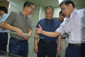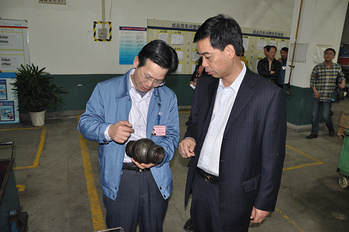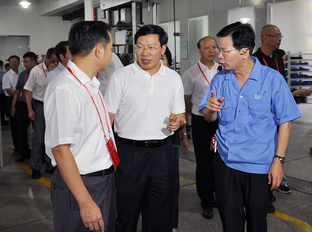 2017年5月9日,田力普(原國(guó)家知識(shí)產(chǎn)權(quán)司黨組書記、局長(zhǎng),左四)、李川(原福建省副省長(zhǎng),左一)到龍軸調(diào)研