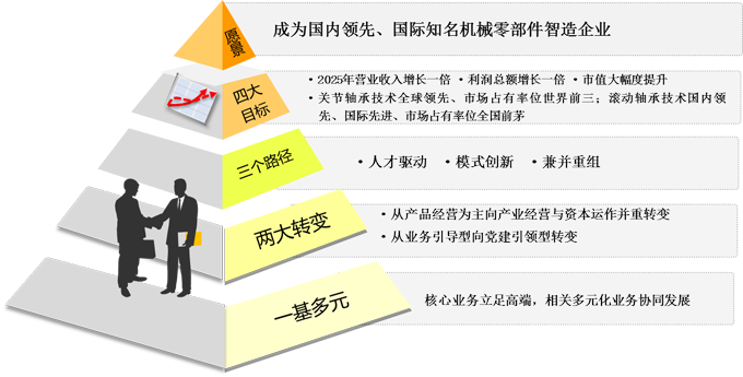 ?保持戰(zhàn)略定力,以需求牽引供給,以供給創(chuàng)造需求,精心謀劃“一基多元”為基點的發(fā)展戰(zhàn)略,打造國內(nèi)領先、國際知名的機械零部件智造企業(yè)。