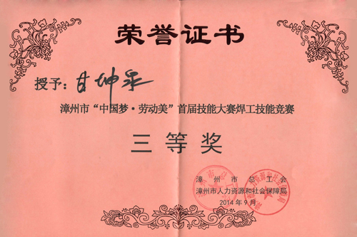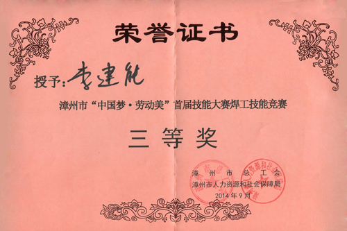 2014年9月24~25日,福建龍溪軸承(集團(tuán))股份有限公司派出6名員工參加了漳州市“中國(guó)夢(mèng)·勞動(dòng)美”首屆職工技能大賽焊工技能競(jìng)賽,甘坤泉與李建能二名選手在緊張激烈的角逐中脫穎而出,榮獲三等獎(jiǎng)。