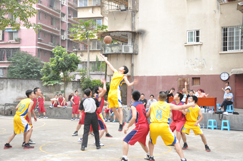 2014年10月24日下午,經(jīng)過(guò)多日角逐,“龍軸奮進(jìn)杯”職工籃球賽決賽在部室隊(duì)與后勤聯(lián)隊(duì)兩支隊(duì)伍間激烈的進(jìn)行著。兩支隊(duì)伍均實(shí)力強(qiáng)勁,雙方你來(lái)我往,互不相讓?zhuān)确纸惶嫔仙?,現(xiàn)場(chǎng)氣氛非常緊張熱烈,隊(duì)員們激烈拼搶?zhuān)趫?chǎng)觀(guān)眾們亦情緒高漲,精彩的進(jìn)球時(shí)的喝彩聲此起彼伏。