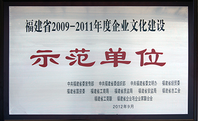 2012年9月28日,福建省委宣傳部召開全省企業(yè)文化建設(shè)工作經(jīng)驗(yàn)交流電視電話會(huì)議,公司被授予“2009-2011年度福建省企業(yè)文化建設(shè)示范單位”,福建省委常委、宣傳部長(zhǎng)袁榮祥出席了福州主會(huì)場(chǎng)會(huì)議并發(fā)表講話,福建省政協(xié)副主席李川主持會(huì)議。