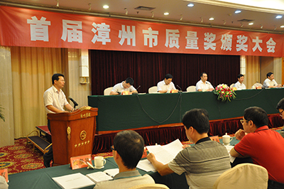 2012年9月28日,漳州市政府在漳州賓館隆重召開首屆漳州市質(zhì)量獎(jiǎng)?lì)C獎(jiǎng)大會(huì),漳州市質(zhì)量獎(jiǎng)評(píng)審委員會(huì)委員單位、各縣(市、區(qū))政府、各開發(fā)區(qū)分管領(lǐng)導(dǎo)、質(zhì)監(jiān)部門領(lǐng)導(dǎo)及列入《漳州市爭(zhēng)創(chuàng)省、市質(zhì)量獎(jiǎng)三年滾動(dòng)計(jì)劃》的企業(yè)代表100多人參加會(huì)議,副市長(zhǎng)洪仕建出席會(huì)議并發(fā)表講話,他充分肯定了漳州市質(zhì)量工作的顯著成效,并對(duì)全市質(zhì)量工作提出新要求。