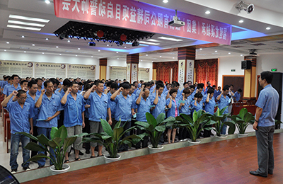 會(huì)上,陳晉輝常務(wù)副總首先宣布了《關(guān)于啟動(dòng)精益項(xiàng)目管理的通知》,對(duì)項(xiàng)目范圍、目標(biāo)、組織架構(gòu)、項(xiàng)目小組人員和參與精益推進(jìn)的相關(guān)各部門人員的職責(zé)做出明確規(guī)定,確保公司精益項(xiàng)目實(shí)施工作能夠按《精益項(xiàng)目計(jì)劃書(一期)》計(jì)劃內(nèi)容順利進(jìn)行,在2014上半年實(shí)現(xiàn)系統(tǒng)提績(jī)達(dá)標(biāo)。企管部施毅群部長(zhǎng)隨即就精益項(xiàng)目主體實(shí)施計(jì)劃與推進(jìn)管理考核制度要點(diǎn)做了簡(jiǎn)要講解。車間主管張高德、班組長(zhǎng)張步斌分別代表公司中層主管和班組長(zhǎng)發(fā)言,并帶領(lǐng)大家向公司董事長(zhǎng)曾凡沛進(jìn)行莊嚴(yán)的集體宣誓。協(xié)力中興董事長(zhǎng)邱模榮也代表咨詢公司在會(huì)上發(fā)表了服務(wù)承諾。會(huì)議過程緊湊、氣氛莊嚴(yán)而又熱烈。