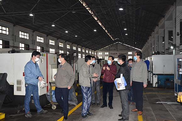 曾凡沛一行先后檢查了員工進廠區(qū)體溫檢測、口罩佩戴、食堂管理、防控宣傳、安全生產(chǎn)等情況,并調(diào)研了與明鑫公司聯(lián)合研發(fā)全自動醫(yī)用口罩生產(chǎn)線的進展情況。曾凡沛強調(diào),疫情就是命令,防控就是責任,我們要堅持以習近平總書記關(guān)于疫情防控的重要指示精神為指引,積極貫徹中央、省、市相關(guān)通知精神,切實加強復(fù)工復(fù)產(chǎn)后新型冠狀病毒感染肺炎疫情一級應(yīng)急響應(yīng)期間返崗人員的健康管理工作,堅定必勝信心,齊心協(xié)力打贏疫情防控阻擊戰(zhàn)。