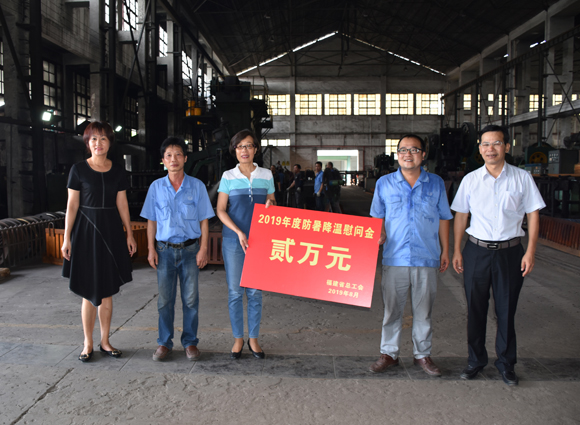 2019年8月14日下午,福建省總工會副巡視員劉冰新及漳州市總工會副主席陳美燕率防暑降溫慰問團(tuán)一行蒞臨公司藍(lán)田一廠區(qū)生產(chǎn)現(xiàn)場,看望慰問一線員工。公司黨委書記、董事長曾凡沛,黨委副書記、工會主席康安偉接待了慰問團(tuán)一行。