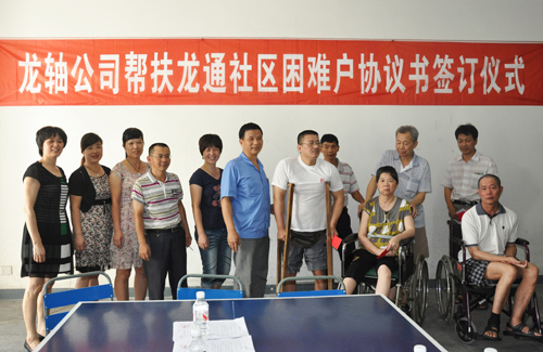 2012年6月28日下午,公司與薌城區(qū)南坑街道龍通居委會(huì)幫扶特困戶三方簽約儀式如期舉行。在薌城區(qū)南坑街道龍通居委會(huì)的見證下,公司黨委副書記張?zhí)┥砉九c龍通社區(qū)5戶困難戶簽署企業(yè)結(jié)對幫扶協(xié)議書,承諾在2012年6月1日至2015年6月1日三年期間為5戶困難戶每年每戶提供3000元的幫扶資金,幫助他們解決生活困難,改善生活條件,并當(dāng)場發(fā)放了2012年6月至2013年5月期間3000元的幫扶金。張?zhí)┥硎荆骸按舜伍_展結(jié)對幫扶活動(dòng),幫扶對象有低保戶、因病致貧戶等,我們希望通過這樣的行動(dòng),傳播公益理念,倡導(dǎo)愛心活動(dòng),讓更多的困難家庭得到幫助!”