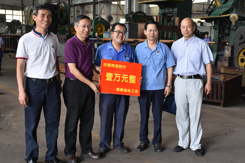 連日高溫,驕陽似火。2018年6月6日,福建省總工會工會副主席鄭翔、省總工會網(wǎng)絡(luò)部部長林國雄及漳州市總工會主席王繼躍攜防暑降溫慰問團(tuán)蒞臨公司藍(lán)田廠區(qū)生產(chǎn)現(xiàn)場慰問一線人員,把組織關(guān)懷送到職工心坎上。公司黨委書記、董事長曾凡沛,副總經(jīng)理、工會主席康安偉接待了慰問團(tuán)一行。