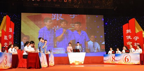 為進一步深入學習習近平新時代中國特色社會主義思想和黨的十九大精神,響應黨中央開展“不忘初心、牢記使命”主題教育要求,2019年6月26日下午,漳州市委組織部、漳州市國資委在漳州電視臺聯(lián)合舉辦“我和我的祖國——不忘初心跟黨走、牢記使命強學習”知識競賽。公司黨委選派紀藝勇、張源才、盧琦、范二金、陳智明等五人組成代表隊參賽,公司黨委書記、董事長曾凡沛,黨委委員、副總經理康安偉和來自各黨總支、黨支部的32名觀眾到場觀看比賽。
