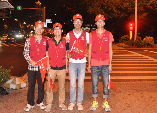 活動(dòng)當(dāng)晚,受臺(tái)風(fēng)天氣影響,下起了雨,但這絲毫不影響我司志愿者們的服務(wù)熱情,他們統(tǒng)一身著志愿服務(wù)紅馬褂、帽子,持宣傳小旗、口哨,早早地走上街頭,對(duì)闖紅燈和橫穿馬路的行人進(jìn)行耐心、禮貌的勸導(dǎo),制止亂扔垃圾等不文明行為的發(fā)生,讓行人自覺規(guī)范行為,樹立較強(qiáng)的交通安全意識(shí)和文明風(fēng)尚意識(shí)。