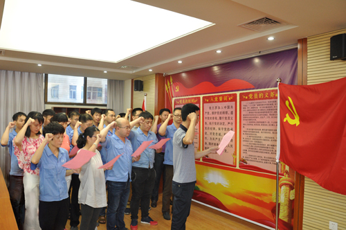 ????2017年7月10日下午,按公司黨委黨建工作計劃要求,公司黨委在黨團活動中心舉行新發(fā)展黨員入黨宣誓儀式。17位新黨員在黨旗的見證下,成為黨的一份子。