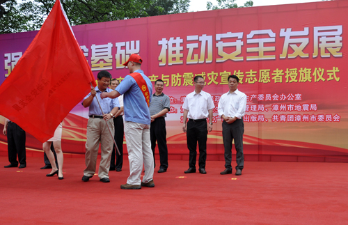 今年5月份是全市第二個防震減災宣傳月,6月份是全國第十二個“安全生產(chǎn)月”。6月13日上午,公司黨委副書記張?zhí)┥鷰ьI(lǐng)15名安全生產(chǎn)志愿者代表國資系統(tǒng)參加漳州市2013年安全生產(chǎn)與防震減災宣傳志愿者授旗儀式