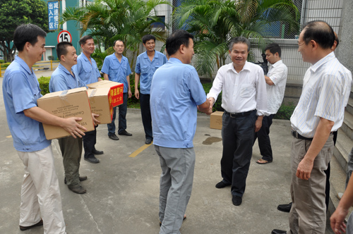 2013年7月2日上午,市委常務(wù)、市總工會主席張禎錦一行在公司工會主席張?zhí)┥⒊?wù)副主席洪麗玲的陪同下,到我司藍田廠區(qū)看望、慰問高溫酷暑堅持奮戰(zhàn)在一線的廣大職工,為他們送去防暑降溫用品。市領(lǐng)導在了解了我司的生產(chǎn)情況及公司在保證員工安全健康的前提下,采取的一系列防暑降溫措施后,對我司表示肯定,并希望我司能夠繼續(xù)采取有效措施,合理安排工作時間,進一步改善職工工作環(huán)境和條件,把防暑降溫工作做得更好。