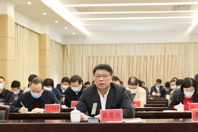 2月25日,市委政法工作會議召開。在第二階段會議,市委常委、政法委書記張慧德對深入學習貫徹習近平總書記對政法工作的重要指示精神,落實中央、省委政法工作會議要求,提出具體貫徹意見。