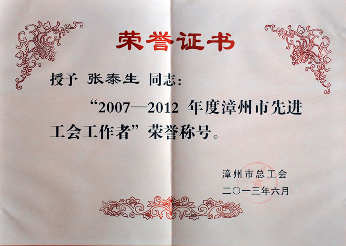 漳州市先進(jìn)工會工作者(張?zhí)┥?/FONT>