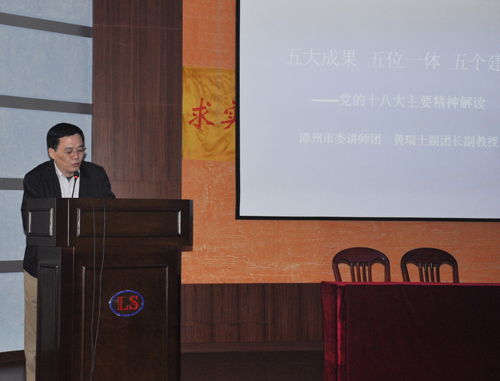 3、2012年12月18日,組織集團(tuán)公司高管、中層主管、子公司高管94人參加“深入學(xué)習(xí)貫徹黨的十八大精神專題講座”,由市委宣傳部講師團(tuán)副團(tuán)長(zhǎng)黃瑞土主講。