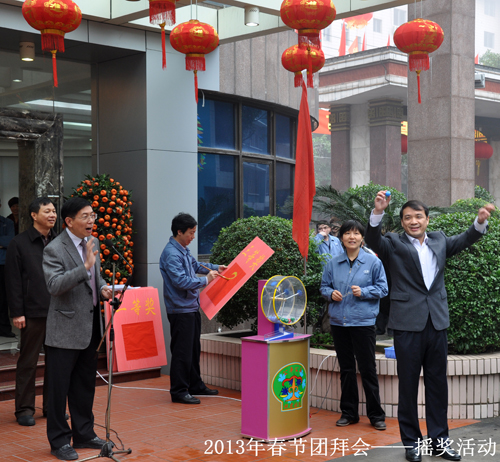 2月6日上午,一年一度具有龍軸特色的“春節(jié)團(tuán)拜會(huì)”在公司總部召開,公司高管及2000多名在職、離退休員工相聚一堂,共慶佳節(jié)。會(huì)上,公司黨委書記、董事長(zhǎng)曾凡沛代表公司黨委、總部發(fā)表新春致辭,員工代表張高德也代表全體員工做了發(fā)言。抽獎(jiǎng)活動(dòng)總是團(tuán)拜的壓軸好戲,大家的情緒隨著搖獎(jiǎng)機(jī)歡快的“噼里啪啦”聲高漲起來(lái),每搖出一個(gè)號(hào),就引來(lái)歡呼聲一片,現(xiàn)場(chǎng)熱鬧非凡!