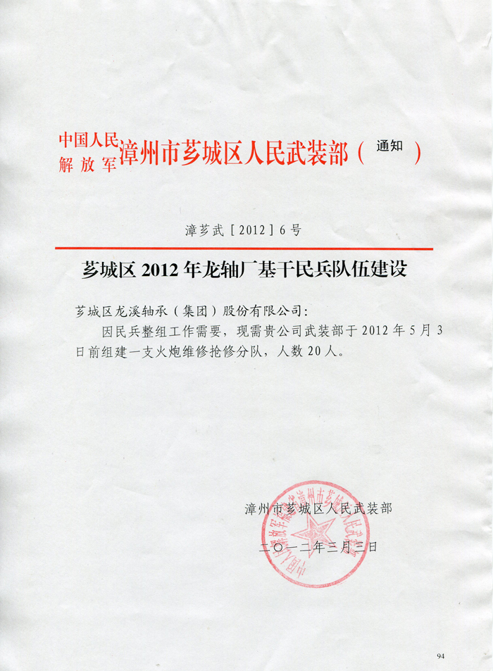 薌城區(qū)2012年龍軸廠基干民兵隊(duì)伍建設(shè)